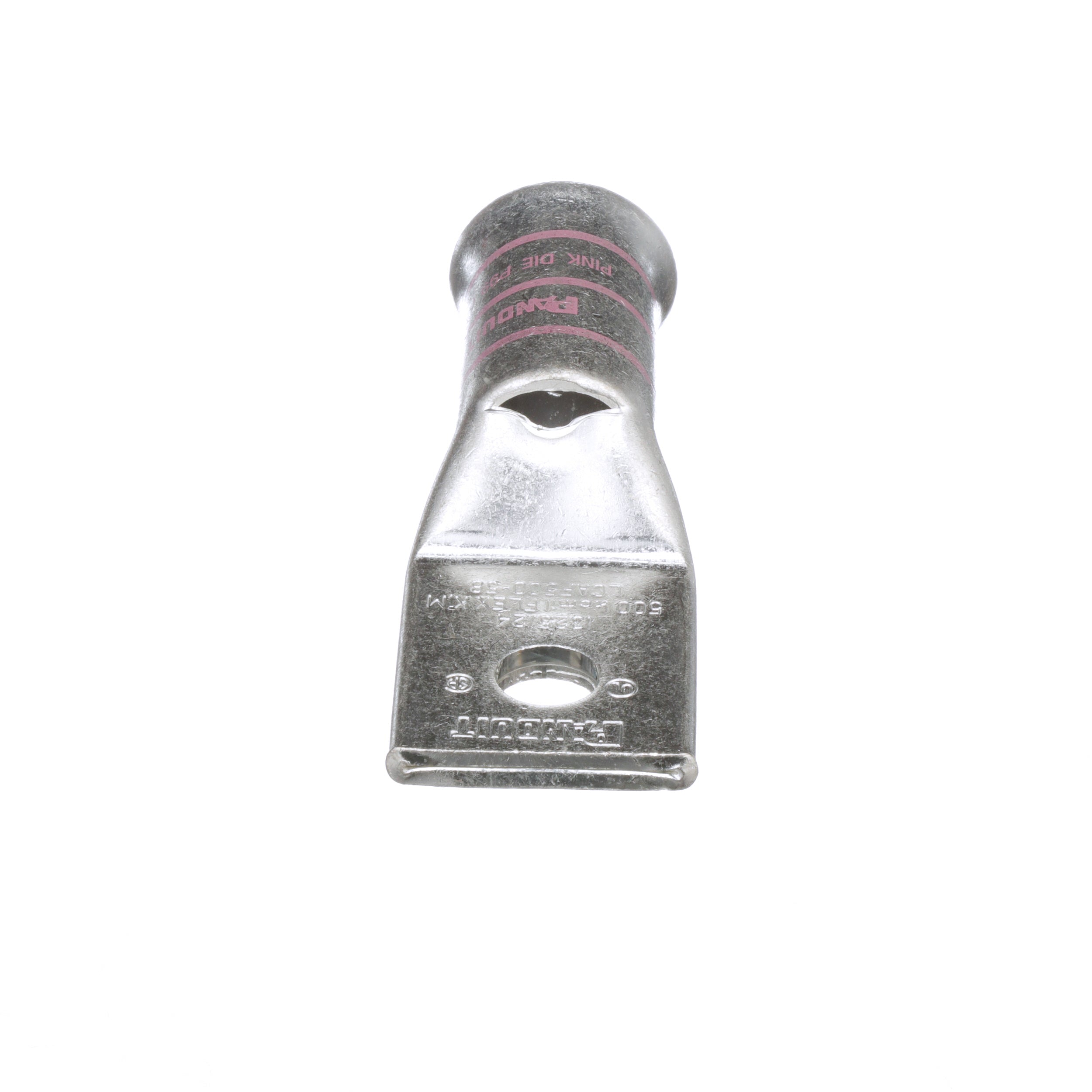 Panduit LCAF500-58-6 is an uninsulated lug designed for use with flexible copper conductors. This connector supports wire sizes up to five hundred thousand circular mils. It features a flared barrel design to ensure reliable connections in various applications.