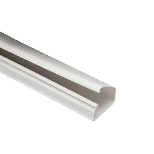 The raceway is suitable for data, voice, and video cables. It is made from rigid PVC and is available in white. The design facilitates cable installation and maintenance.