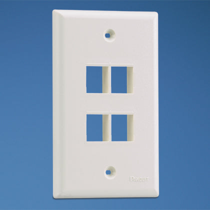 Panduit NK4FNEI is a NetKey 4-port faceplate. This faceplate is designed for use in data communication and networking applications. It features four ports that support keystone modules, allowing for versatile connectivity options. The single gang design provides a streamlined installation experience.