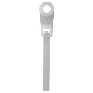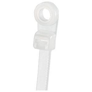 The Panduit PLC1.5I-S8-C is a clamp tie designed for securing cable bundles. This clamp tie measures six point one inches in length and features a number eight screw hole. It is made from nylon six point six, which provides durability for indoor and outdoor applications.
