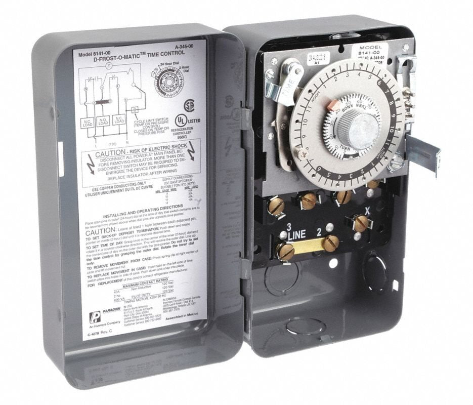 The Paragon 8041-00 Defrost Timer is essential for efficient temperature management in commercial refrigeration. Designed for automatic defrosting, this unit works with electric defrost heaters, providing precise control over defrost cycles.