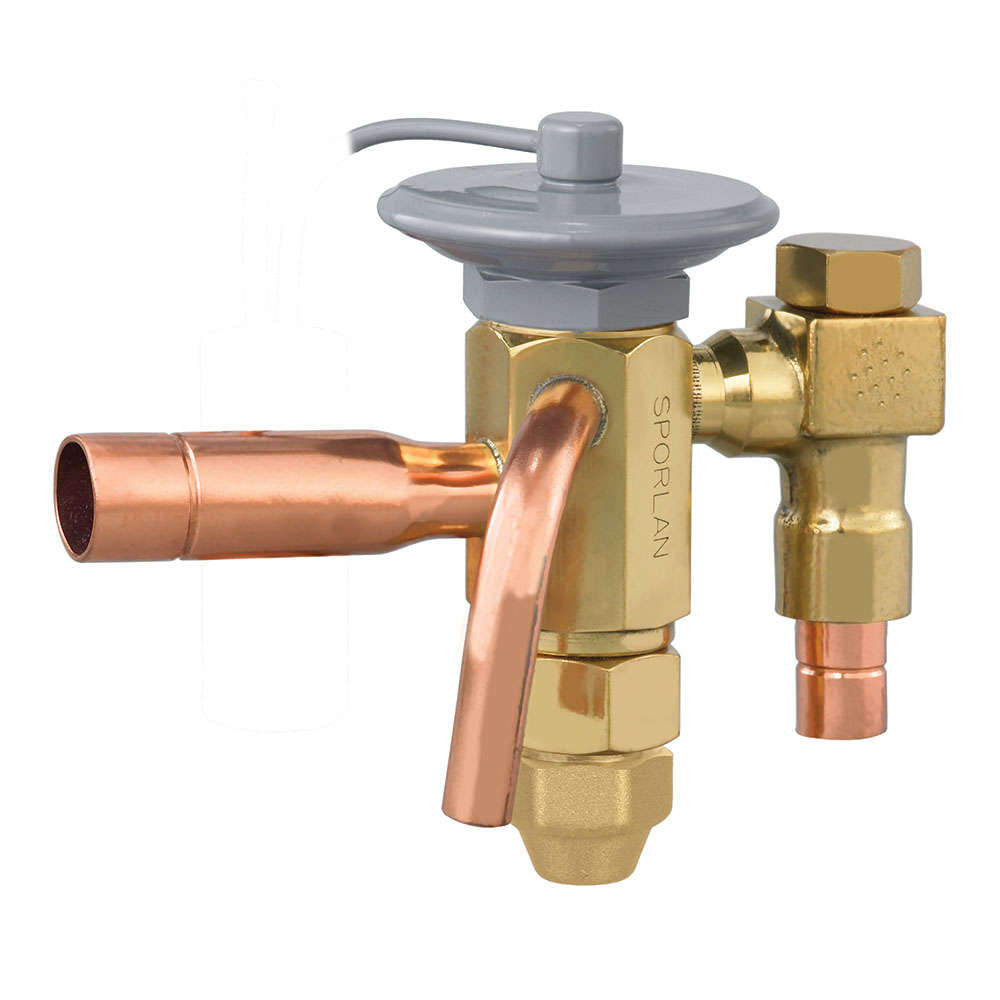 The Sporlan 108687 is a thermal expansion valve designed for commercial refrigeration using refrigerant R-22. This valve features a 3/8 inch inlet and a 1/2 inch outlet connection, suitable for systems with capacities between a half and two-thirds of a ton.