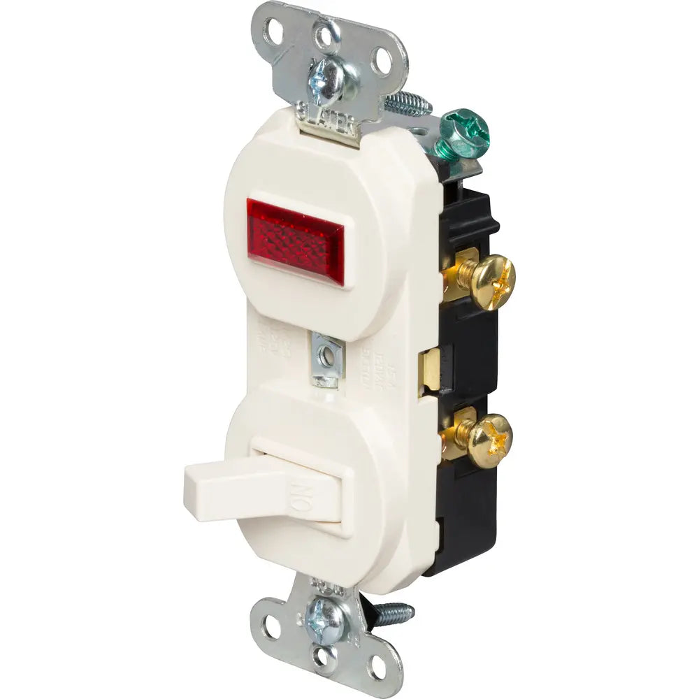 This combination switch offers functionality for controlling lighting while providing a pilot light indicator for visual feedback.