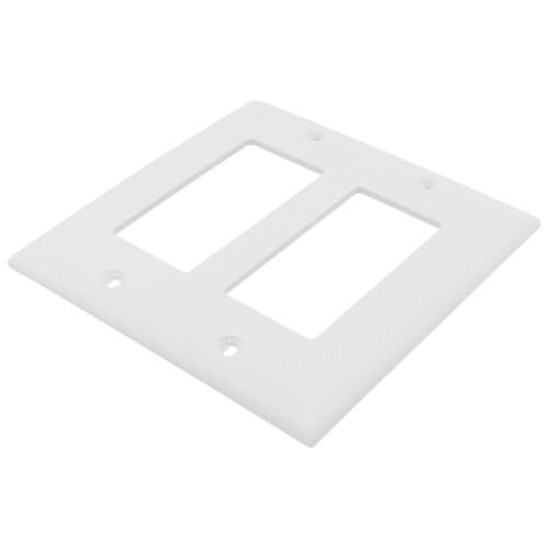 Pass & Seymour TP262W is a 2-gang decorator wall plate made from self-extinguishing nylon. This wall plate measures four point seven inches in height and four point seven four inches in width. It is designed for residential and commercial applications. The wall plate provides a clean finish and cuts down on drywall rework due to its larger dimensions.