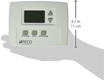 The PECO TA180-001 is a 3 Speed Fan Programmable Thermostat designed for efficiency and ease of use. This line voltage thermostat is ideal for controlling heating and cooling systems in residential settings. The model accommodates one heating and one cooling system (1H/1C), making it versatile for various setups.
