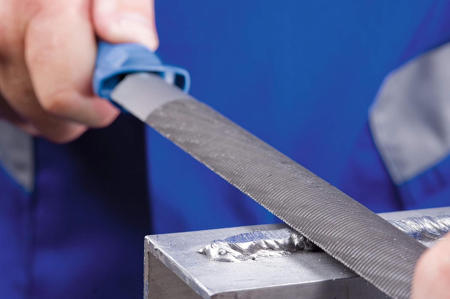 This hand file, made by Pferd, is built for tough environments. Its coarse grit and half-round design enable effective filing on bronze, aluminum, alloy steel, brass, copper, zinc, and grey or nodular cast iron.