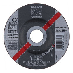 PFERD 63400 is a high performance depressed center wheel designed for cutting and grinding tasks. With a diameter of four and one half inches and a thickness of one eighth inch, this wheel is engineered for fast and efficient material removal. The wheel features a center hole size of seven eighths inch and is made from aluminum oxide.