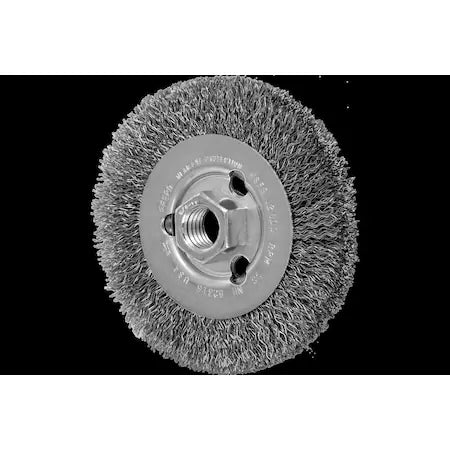 The Pferd 82316 mini crimped wire wheel offers aggressive brushing action ideal for pipeline and container construction.