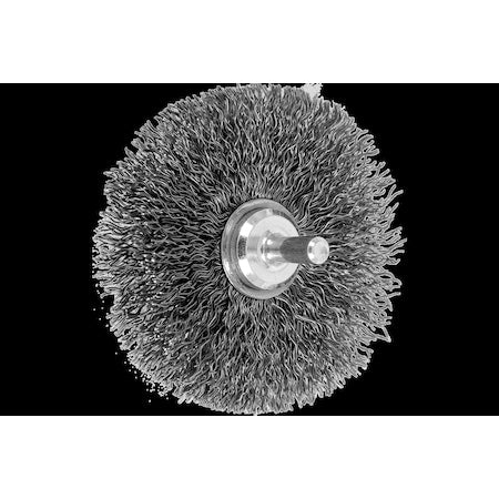 The Pferd 82900 Mounted Crimped Wheel Brush is designed for use in confined areas. This brush is constructed of high-quality carbon steel and operates at a maximum speed of 20,000 rpm. It is ideal for light to medium brushing, including removing light scale, dirt, rust, corrosion, and light burrs.
