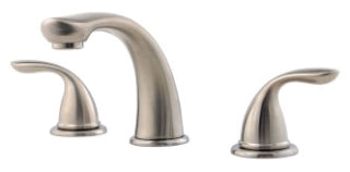 The Pfister 1T6510K is a two handle roman tub faucet designed for durability and ease of use. This trim only product does not include the valve. It is ideal for three-hole installations and is made for the Pfirst Series collection. The brushed nickel finish offers a contemporary look that complements various bathroom styles.