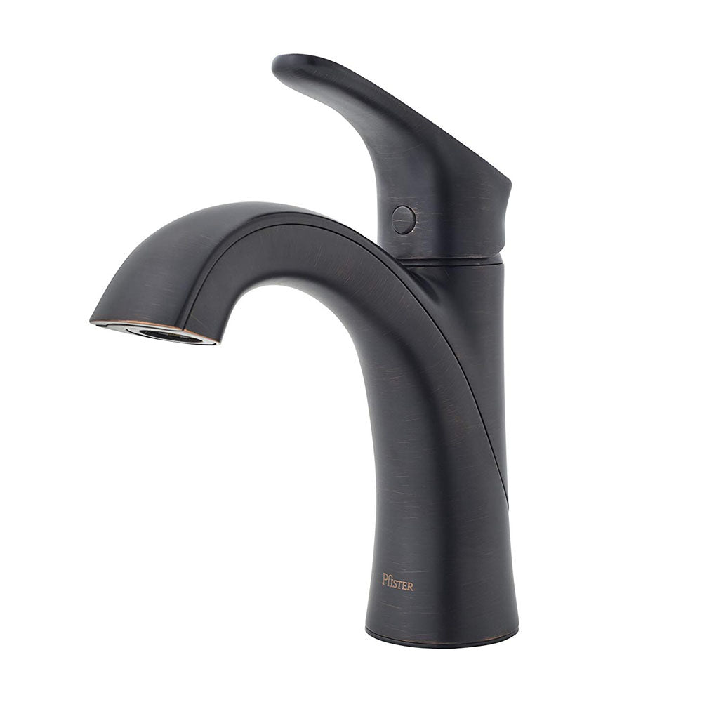 The Pfister LG42WR0Y is a single handle bathroom sink faucet that features a modern design suitable for various settings. This faucet is made of durable metal and is available in a Tuscan bronze finish. It includes a push-and-seal drain that requires no tools for installation, making it user-friendly. This faucet complies with NSF/ANSI regulations and is lead-free. It meets or exceeds EPA WaterSense standards, reducing water consumption by thirty percent. The faucet allows for either one or three-hole installation and includes both a valve and cartridge.
