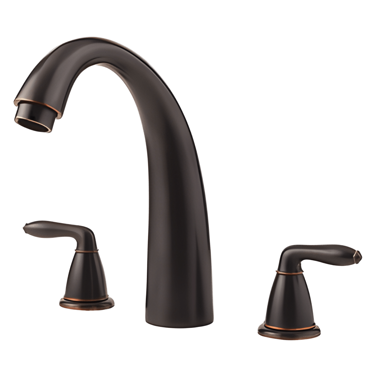 The Pfister Serrano 2 Handle Roman Tub Trim Kit, MPN RT6-5SRY, is designed for easy installation and functionality. This trim kit features a sleek design suitable for various bathroom styles.