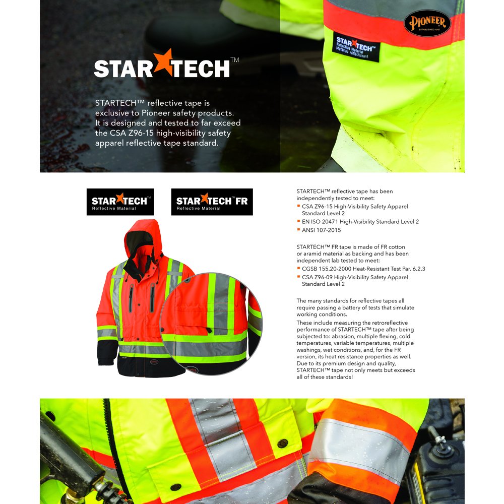 Standards: ANSI/ISEA Class 2, CSA Z96-15 Class 2 Level 2