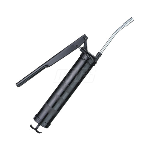 This grease gun allows single-handed operation, ideal for hard-to-reach areas. It features an easy-loading mechanism and a baked enamel finish for enhanced durability.