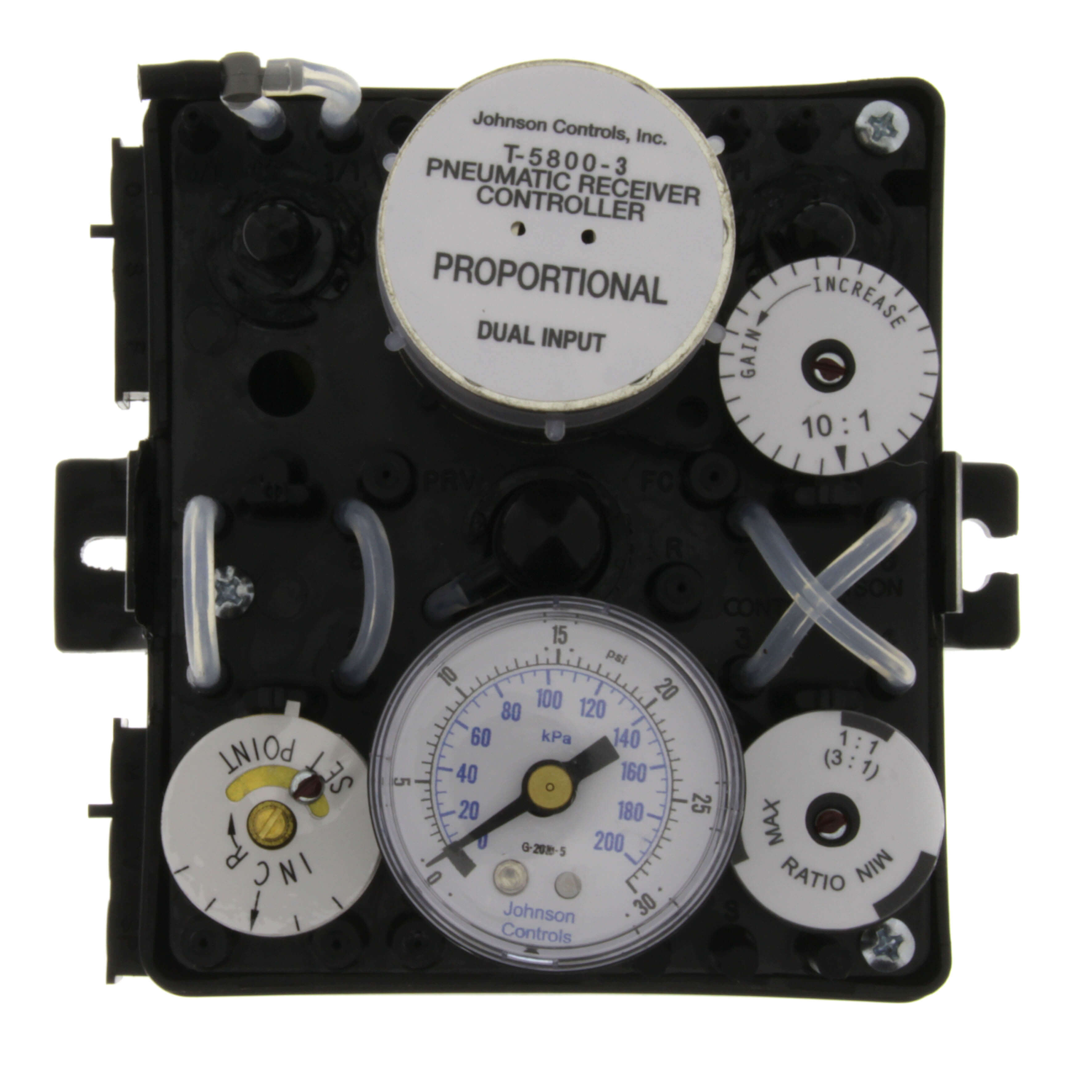 The Johnson Controls T-5800-3 is a pneumatic receiver controller designed for HVAC systems. It is suitable for use with remote temperature, pressure, or humidity transmitters, providing precise control for pneumatic devices. The dual input capability allows monitoring of multiple variables ensuring optimal operation.