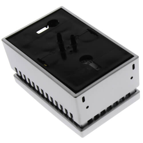 This thermostat offers a wide throttling range for Zero Energy Band (ZEB) operation and includes a satin chrome cover with multiple window options. Suitable for two-pipe systems, providing single temperature control.