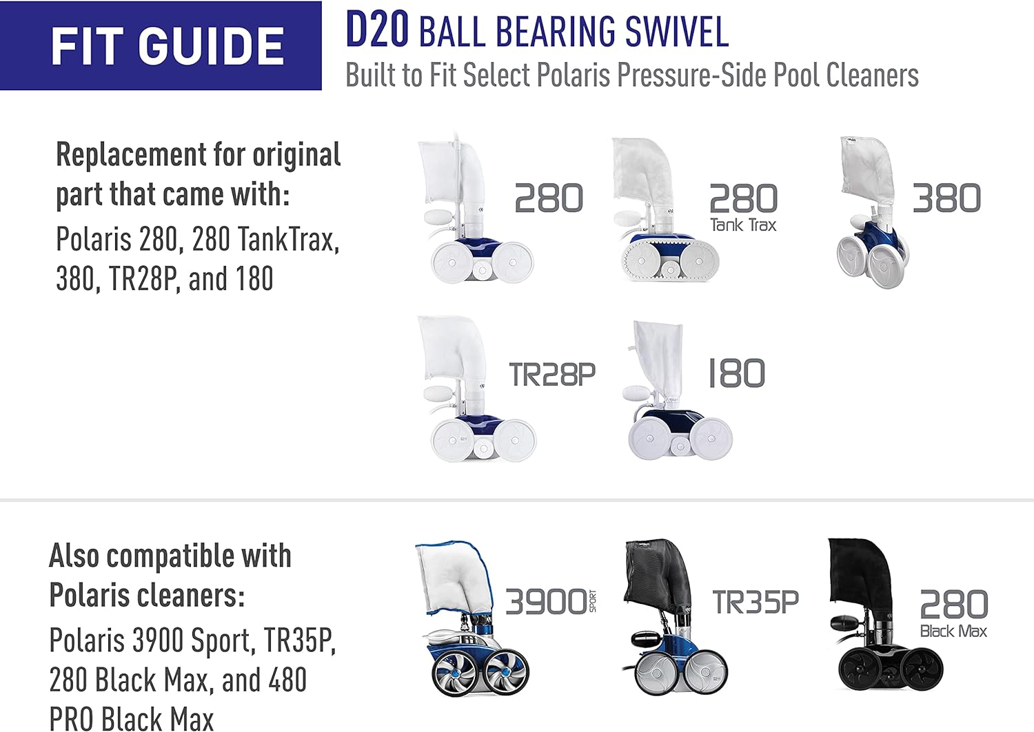 Polaris D20 Ball Bearing Swivel Replacement Compatible with Models 280, 380, 3900 Sport, TR28P, TR35P, 180