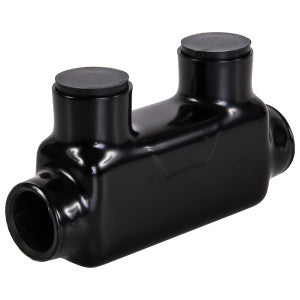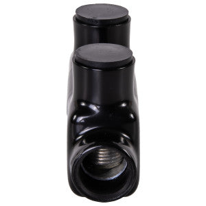 The Polaris ISR-600 is an insulated connector designed for dual-rated splicing applications. It features two ports that accommodate wire sizes from 600 MCM to 6 AWG. The product has an aluminum alloy body coated with plastisol insulation.
