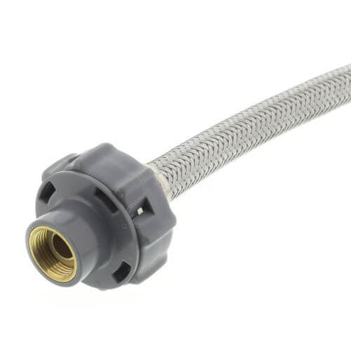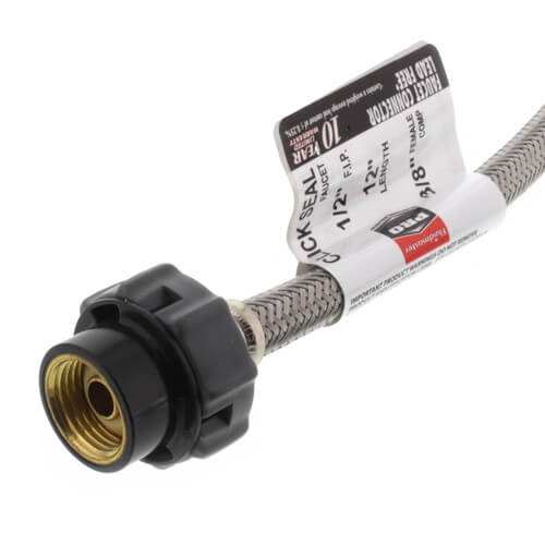 The Fluidmaster PRO1F12CS faucet connector ensures a reliable connection for plumbing tasks. This connector measures three-eighths of an inch by one-half of an inch and is ideal for various faucet applications. It features a twelve-inch length and is rated for a working pressure of one hundred twenty-five psi. The materials used include braided stainless steel and reinforced PVC tubing, confirming durability and flexibility.