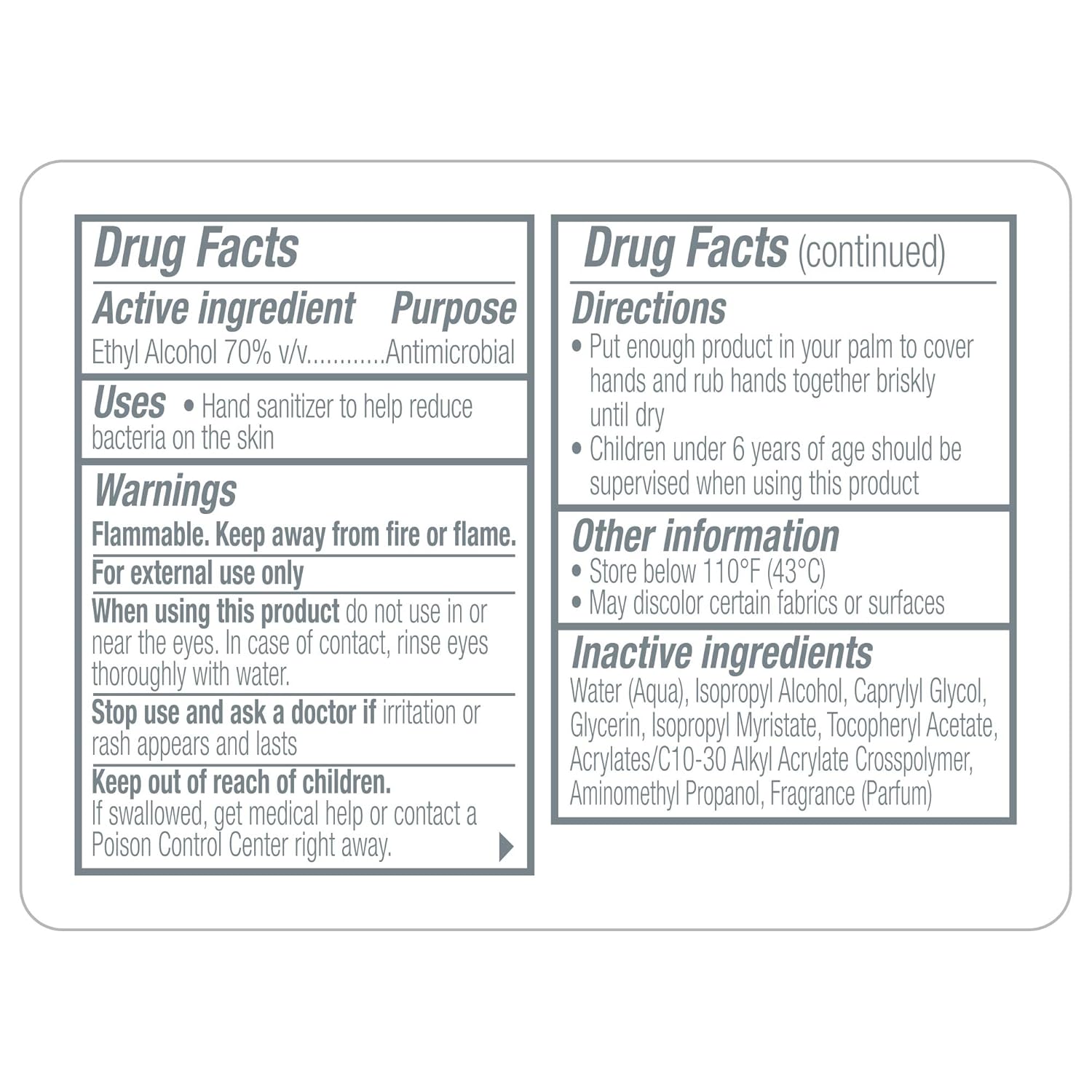 Active Ingredients: Ethyl alcohol 70 percent v/v