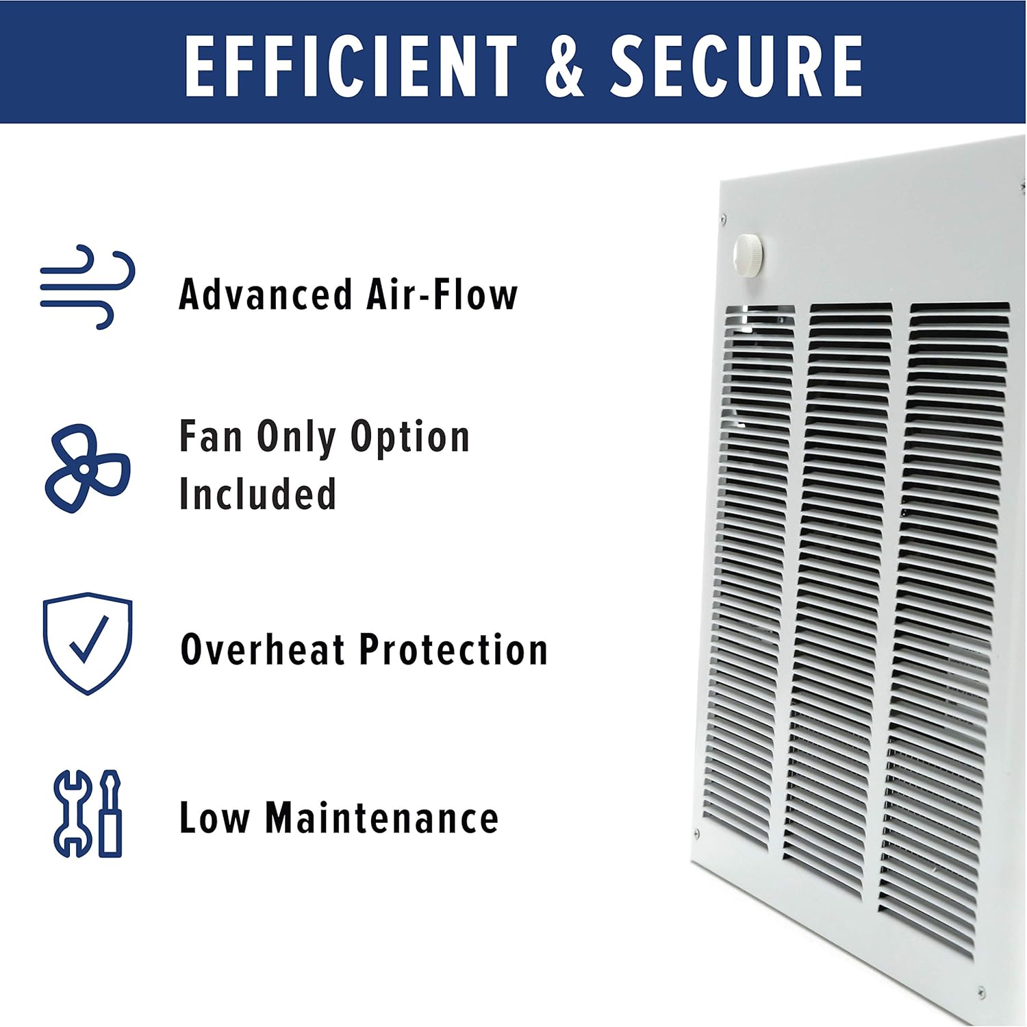 This unit features a fan-only option for summer use and includes a manual reset thermal overheat protector for safety. It's easy to install with an integral thermostat, eliminating the need for a separate temperature control unit.