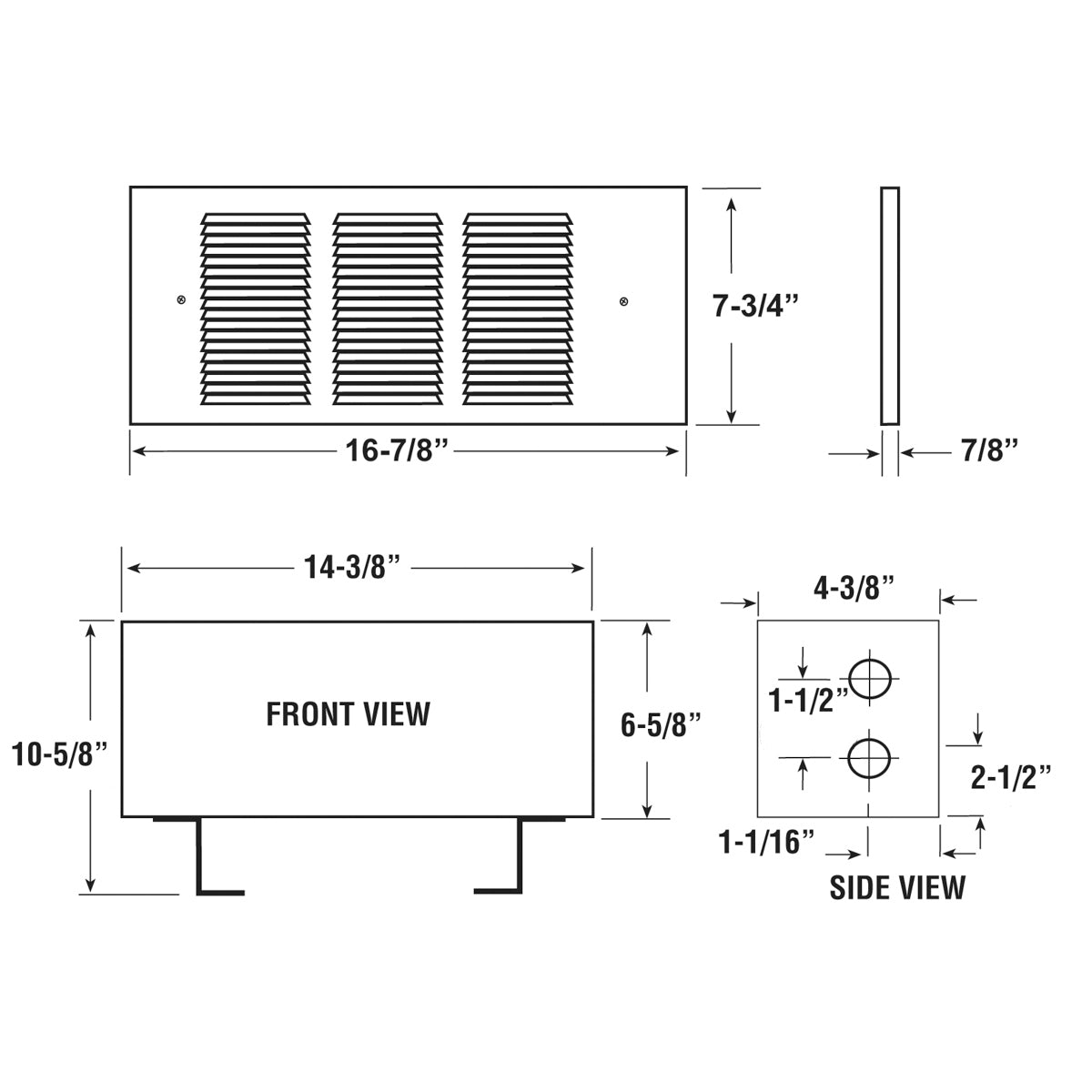 This heater's quiet tangential blower ensures consistent and effective air circulation. Its easy-to-install design includes a back box, fan deck, and front grille, making installation straightforward. The heater's register-like front grille offers a seamless look that blends well with standard home heating vents.