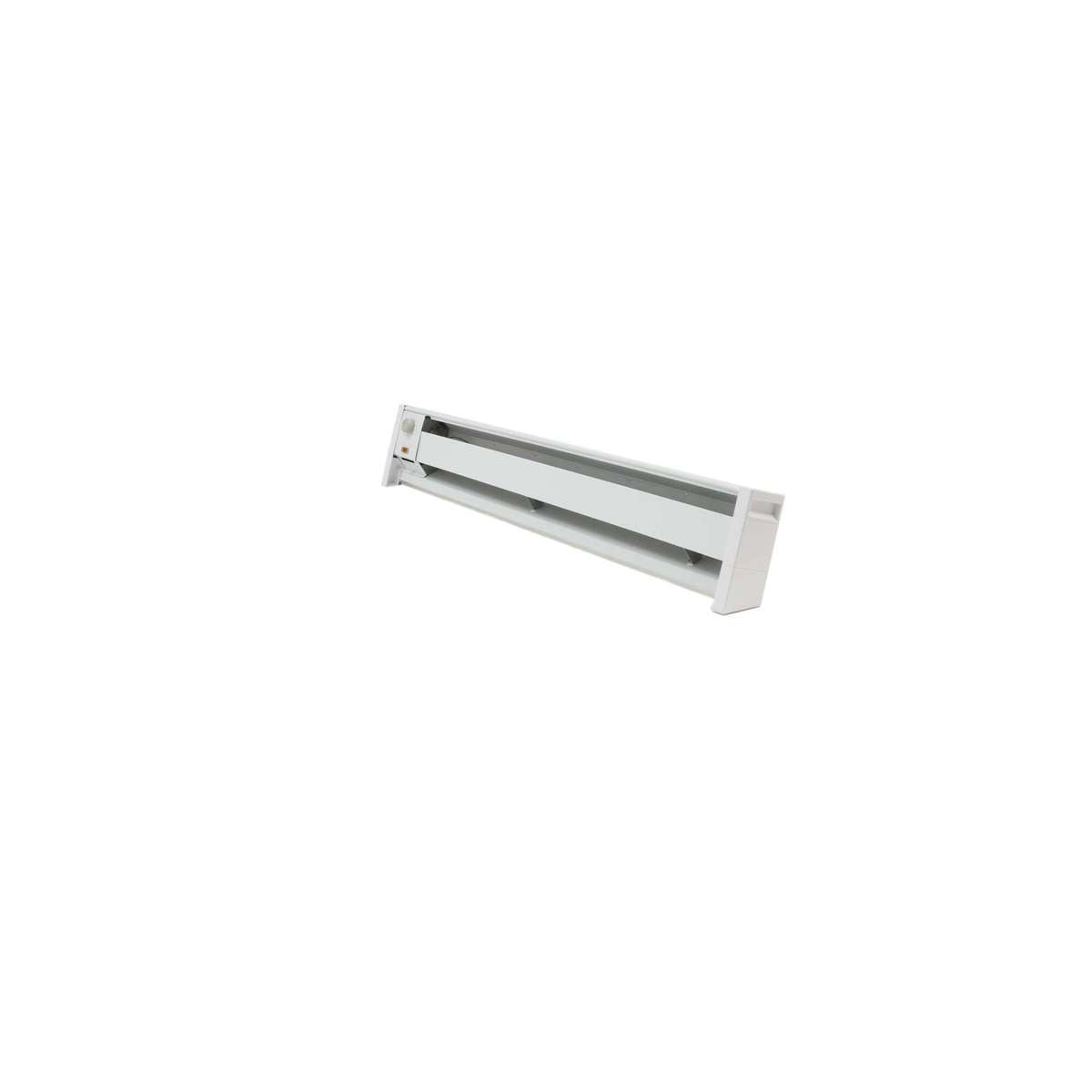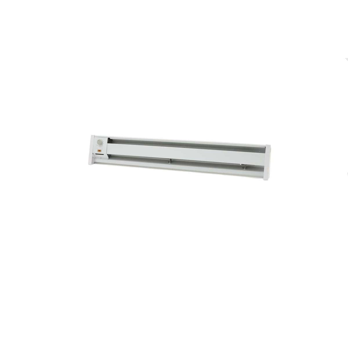 The Qmark HBB500 is a two-foot, five hundred watt hydronic electric baseboard heater. This unit operates at one hundred twenty volts and is designed for both primary and supplemental heating. It effectively warms up cold spots in a room and is suitable for hard-to-reach areas.