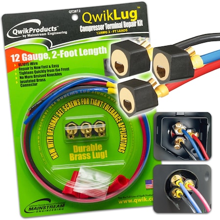 The Qwik Products QT2812 Compressor Terminal Repair Kit offers a reliable solution for fixing damaged or corroached spade terminals. Featuring Mainstream Engineering's patented QwikLug technology, this kit is essential for professionals in the HVAC industry.