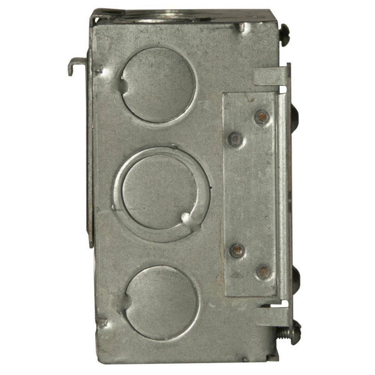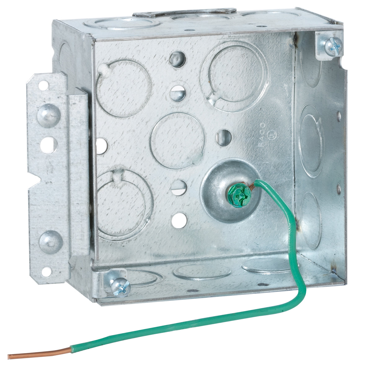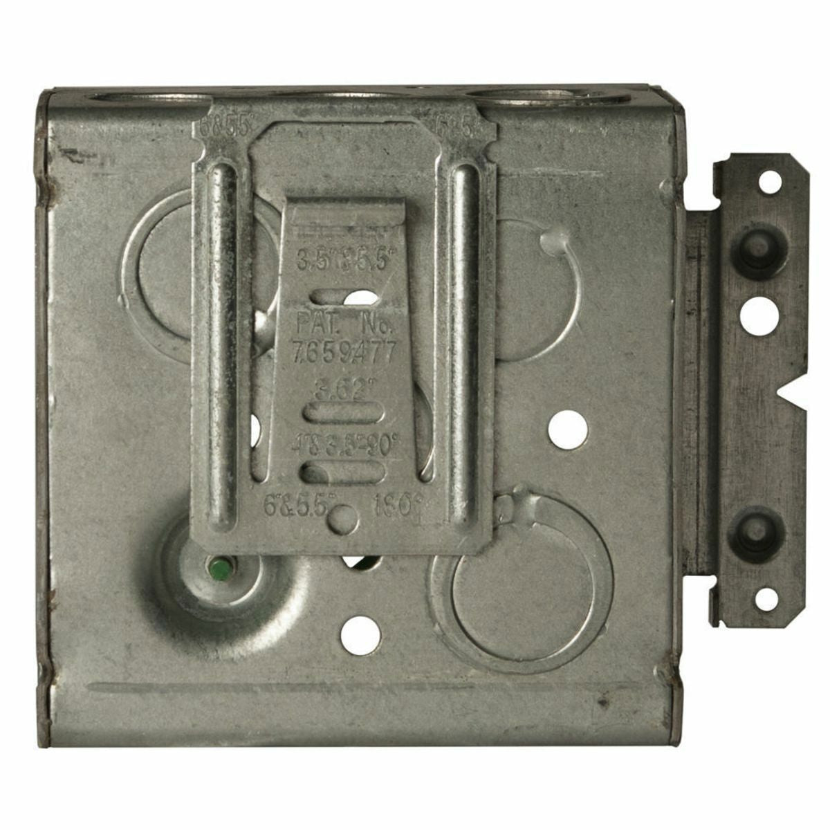 The RACO Square Box with Manufacturer Part Number 232H is a welded steel box suitable for various electrical applications. It features a capacity of thirty point three cubic inches and provides sixteen knockouts for flexible conduit entry. Its dimensions are four inches in height, four inches in width, and two and one-eighth inches in depth, making it compatible for use in tight spaces.