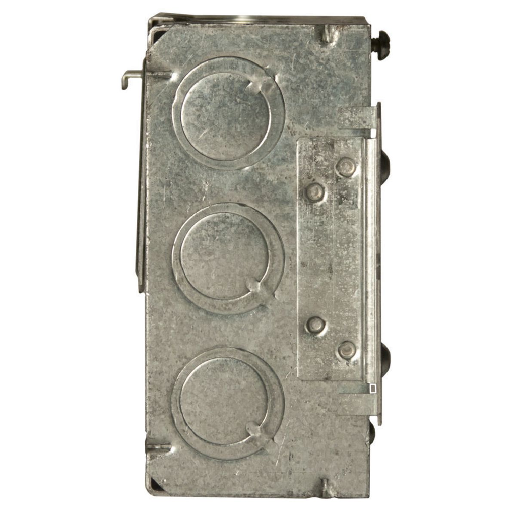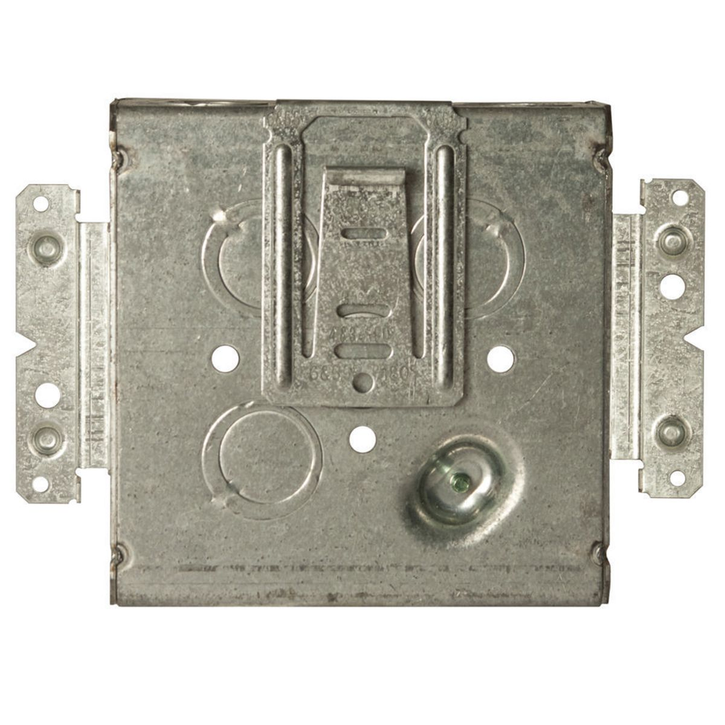 The RACO 257M 4-11/16 Square Box is a welded steel construction designed for electrical applications. This box measures four and eleven-sixteenths inches square and is two and one-eighth inches deep. It includes one half-inch knockout and fifteen TKO knockouts for flexibility in installation. An eight-inch #12 stranded copper pigtail is included for ease of wiring.