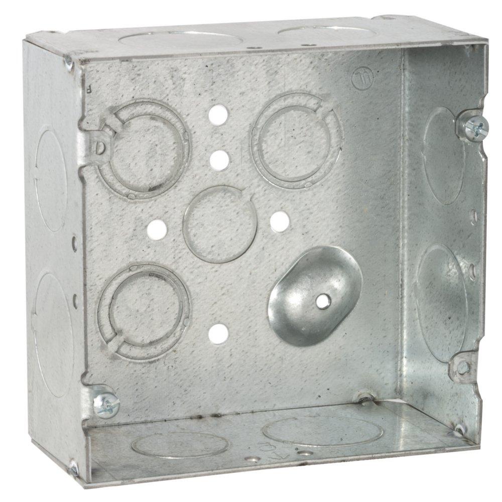 The Raco 265 Box-Loc Square Box features a powder-coated finish for corrosion resistance and a compact design ideal for tight spaces.