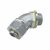 The RACO 3443 is a liquidtight conduit connector designed for a three-quarter inch trade size with a 45-degree angle. It features a non-insulated design ideal for flexible metallic and non-metallic conduits. Constructed from malleable iron and steel, it is finished with electro-plated zinc to resist corrosion.