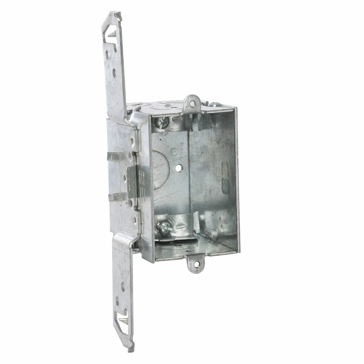 The Raco 531 switch box is designed for electrical applications, featuring a gangable design that allows for multiple device installations. It is made from steel and includes a TS bracket for easy mounting.