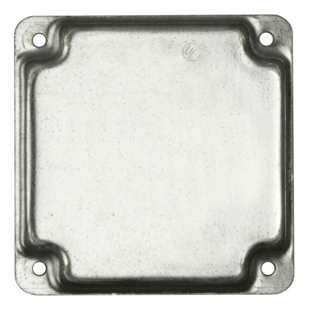 The RACO 804C is a four-inch square exposed work cover. This model is designed with a blank face and no holes. It is suitable for various electrical applications. The cover ensures compliance with safety norms and installation guidelines.