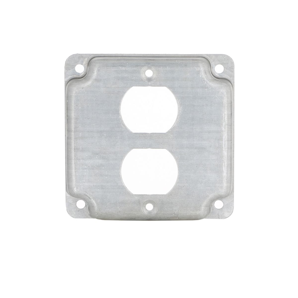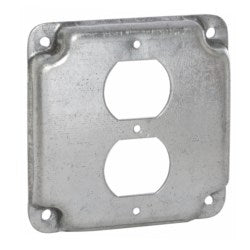 The RACO 902C is a four inch square duplex cover designed for electrical applications. It is made of steel and supports a duplex receptacle. This cover has a height of four and one eighth inches and a thickness of half an inch.