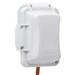 The Raco MM420W is a polycarbonate 1-gang non-metallic extra-duty while-in-use cover designed for use with weatherproof device boxes. This rectangular cover measures four point eighteen inches by two point seventy-five inches by five point nine inches. It features a patented Quick-Fit keyhole mounting system that allows for quick installation in under a minute, making it ideal for quick jobs. The cover is UL listed and meets NEMA three R standards, ensuring reliable weather-proof protection for electrical outlets.