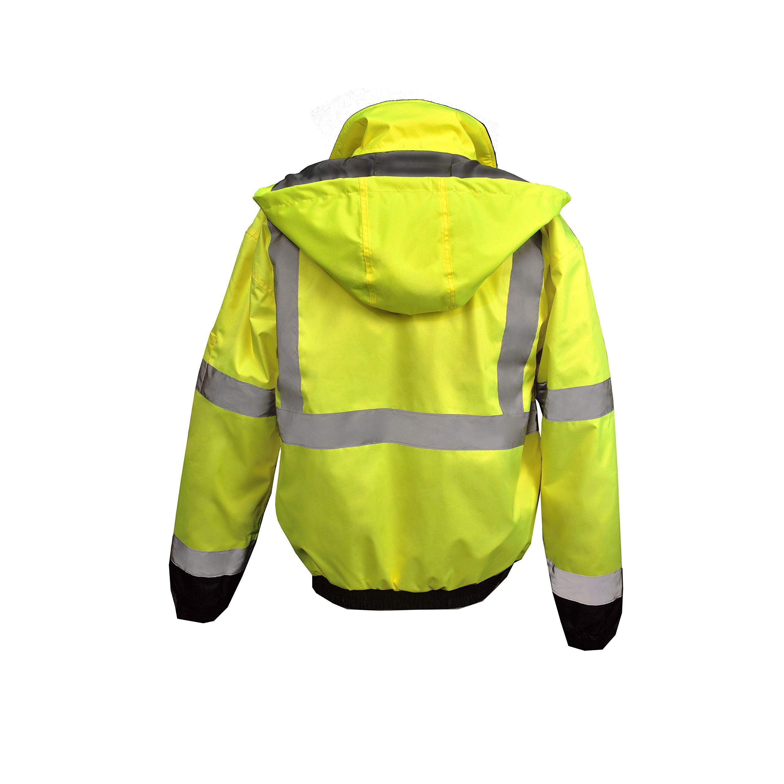 The Radians SJ11QB-3ZGS-L is a Size L Oxford polyester reusable weatherproof bomber jacket with a built-in quilted liner, providing durability and comfort for high visibility needs. It comes in black and hi-viz green, ensuring safety and visibility in various environments.