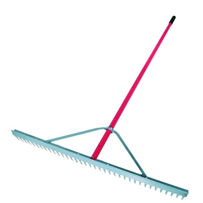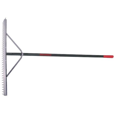 The Razor-Back 63000 Landscape Rake is an essential tool for maintaining landscapes. Designed with a 66-inch aluminum handle and a 36-inch head, this rake offers durability and efficiency. The rake is ideal for spreading dirt, gravel, and sand.