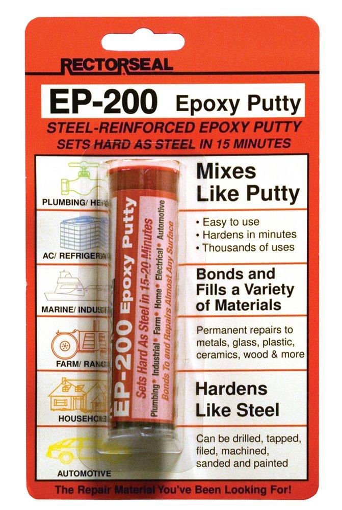 The RectorSeal EP-200 is a two-ounce epoxy putty stick with a tensile strength of six thousand PSI and a compression strength of eighteen thousand PSI. This product is ideal for various applications, including plumbing, electrical, and industrial uses.