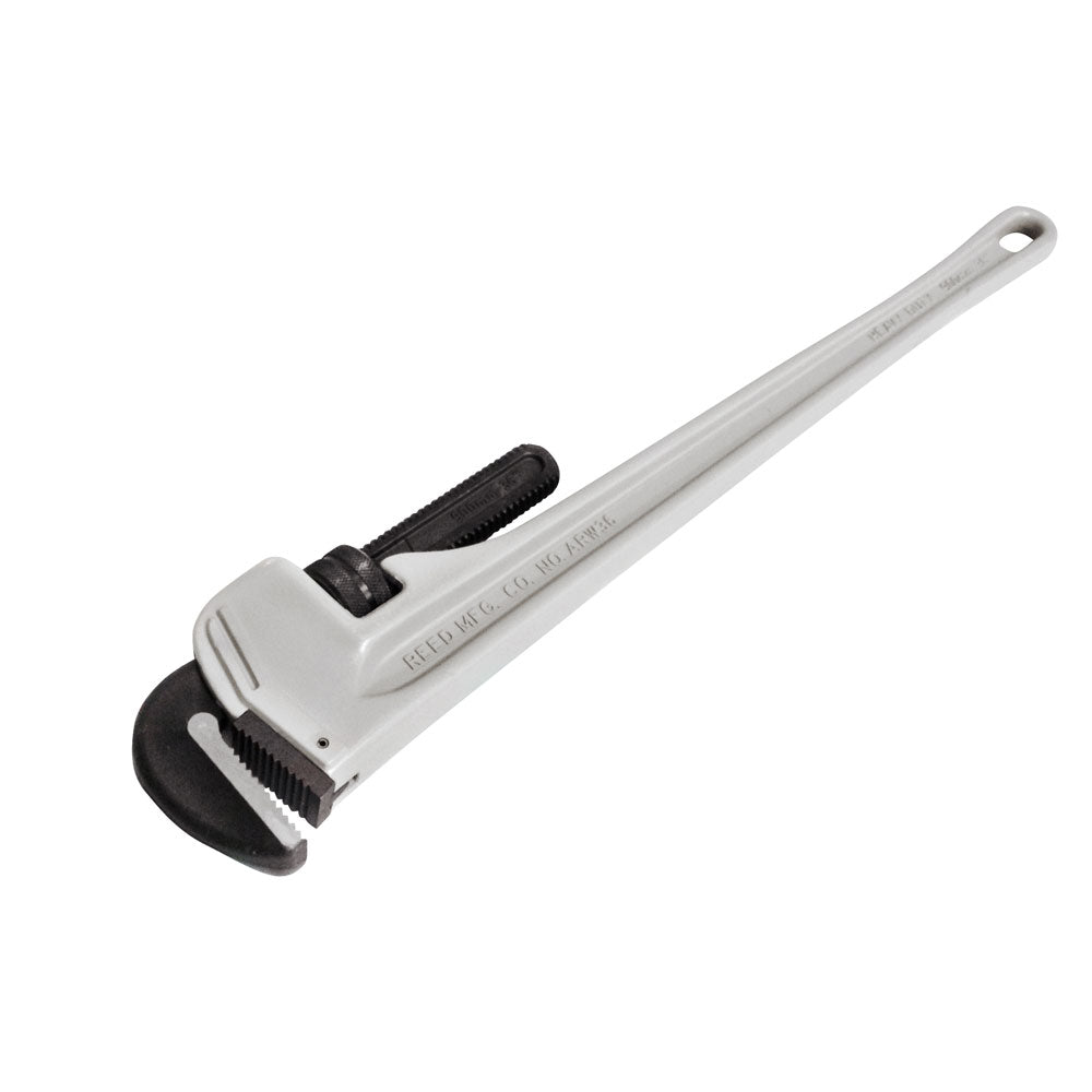 The REED 02099 is a twenty-four inch aluminum pipe wrench designed for heavy-duty applications. This wrench features a titanium-aluminum alloy handle that is heat-treated for enhanced strength. It delivers a lightweight, yet robust solution for various plumbing tasks.