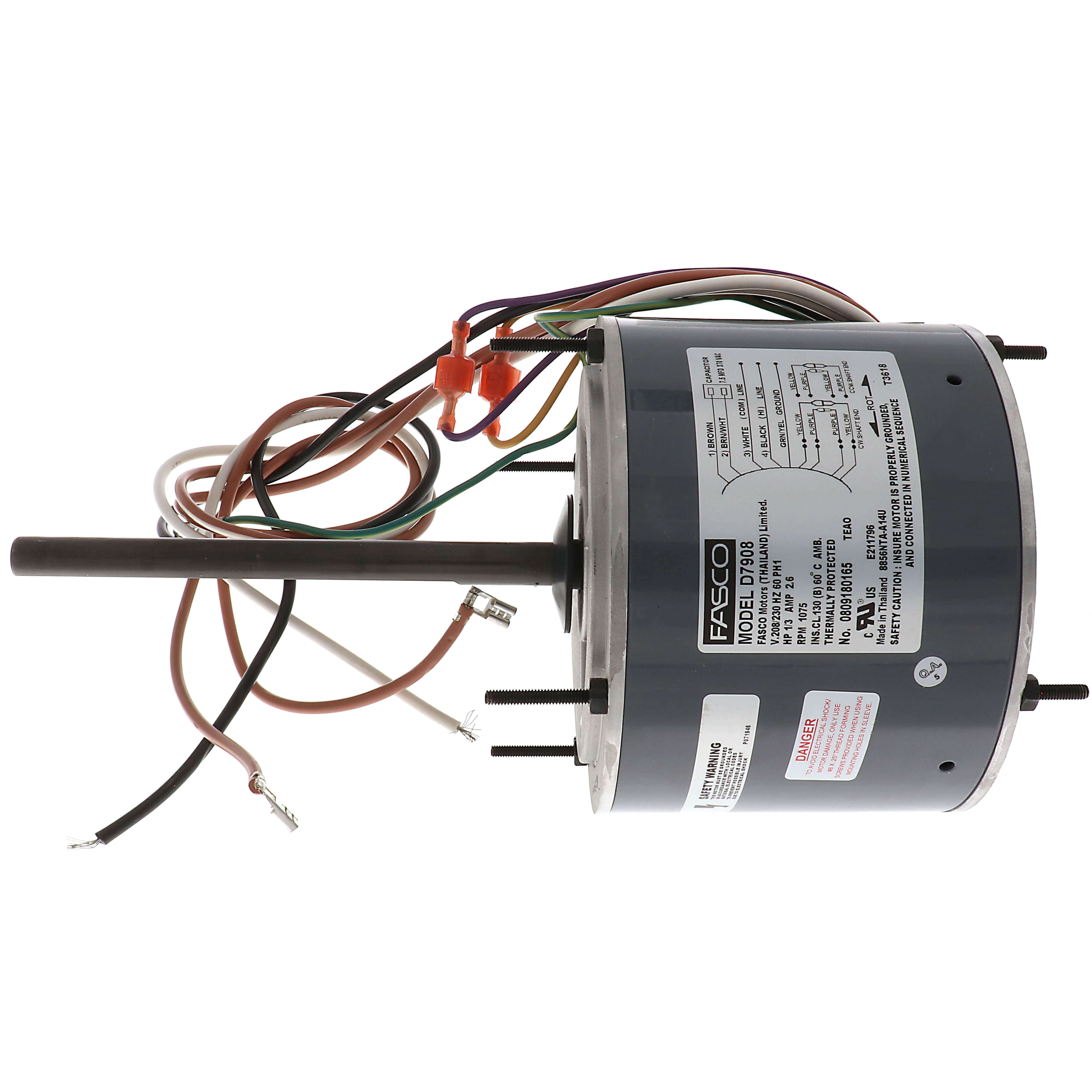 The Fasco D7908 is a condenser fan motor designed for efficient air movement in HVAC systems. This motor features a power rating of one third horsepower and operates at a speed of 1075 revolutions per minute. It is built for use in equipment that requires a reliable and durable motor for continuous operation. This motor is suitable for a variety of applications, including furnace fans, air handlers, blowers, air conditioners, and commercial refrigeration.