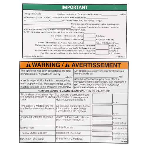 REZNOR 1036540R NATURAL GAS CONVERSION KITS