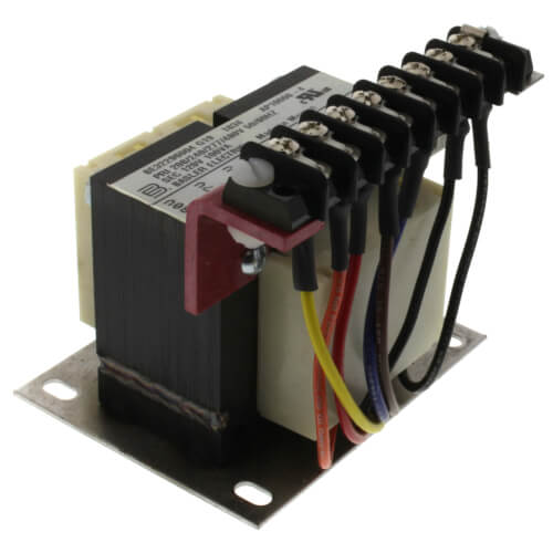 The Rheem-Ruud SP10006 Transformer operates at multiple voltage levels including four hundred eighty, two hundred seventy-seven, two hundred forty, two hundred eight, and one hundred twenty volts. It is a transformer designed to efficiently convert electrical energy, making it suitable for industrial applications.