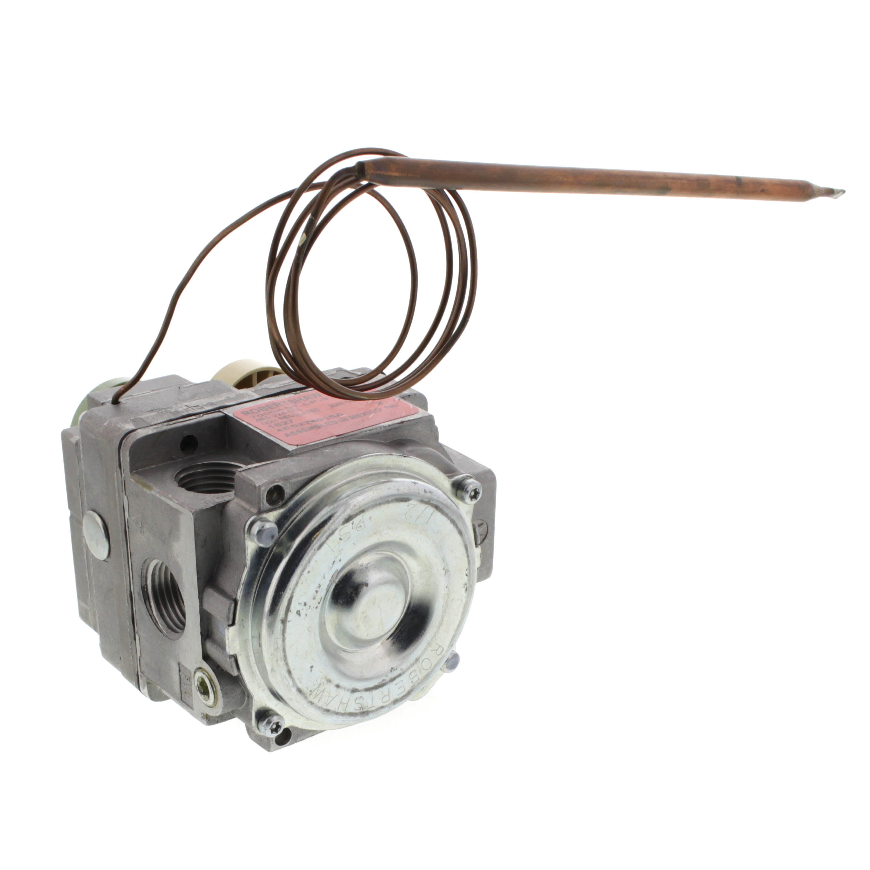 The Robertshaw 700-204 is a hydraulic snap throttle combination gas valve designed for natural gas applications. It features a nominal size of 1/2 inch and operates at a pressure rating of 0.5 psi. This valve includes a thirty-six-inch capillary and is suitable for a variety of heating systems.
