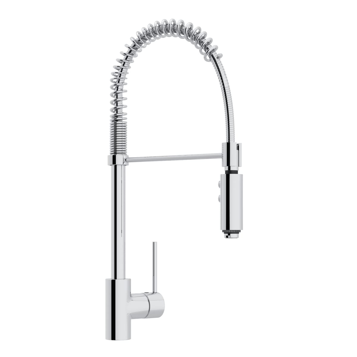 The Rohl LS64L-APC-2 is a pull-down kitchen faucet that features a single handle design. Made from robust materials, it is resistant to wear and tear. This faucet comes in a polished chrome finish, making it easy to match with various kitchen themes.
