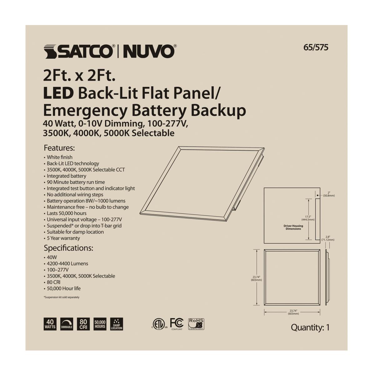 The SATCO ColorQuick LED Emergency Backlit Flat Panel, MPN 65/575, offers versatile lighting solutions for indoor environments. This 40W panel is designed for easy installation and effective illumination. Ideal for spaces requiring bright and energy-efficient lighting.