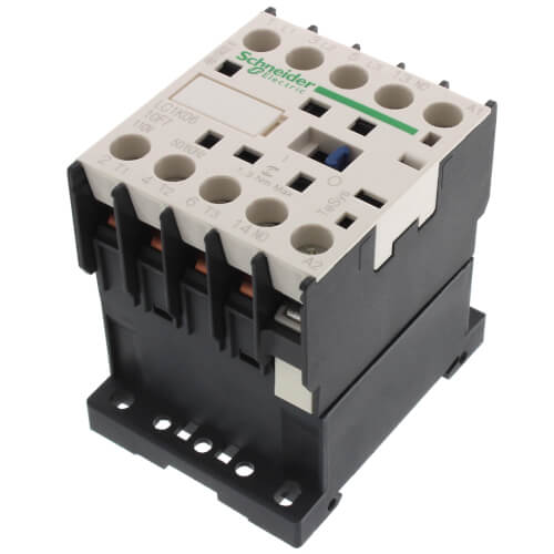 Schneider Electric LC1K0610F7 is a 6 Amp, 3-pole IEC contactor. This contactor is designed for motor applications and is rated for full voltage operation at 600 volts AC. The LC1K0610F7 features a 110V 50/60Hz AC coil and includes one normally open auxiliary contact.
