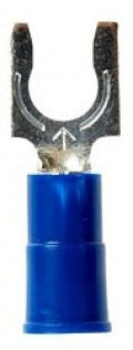 3M Scotchlok MV14-10FLK is an insulated locking fork terminal. It connects wire sizes from sixteen to fourteen AWG. The terminal measures 0.88 inches in length. Made from electrolytic copper with a vinyl insulation, this terminal is designed to provide secure electrical connections.