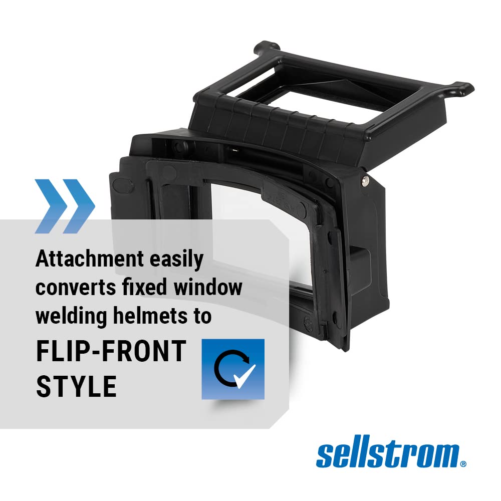 The Sellstrom S27300 Welding Helmet Flip Front Adaptor allows you to convert your Sellstrom or Jackson Safety welding helmet to a flip front style. This durable nylon adaptor includes all necessary parts for assembly and features two lift-up finger handles for easy lifting. Made in the USA, it ensures quality and safety.