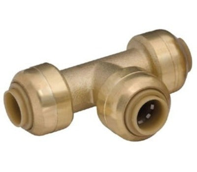 The SharkBite U370LF is a durable brass tee designed for simple push-fit connections in potable water and hydronic heating applications. Featuring a robust design, this connector facilitates quick installations without the need for soldering, clamps, unions, or glue.